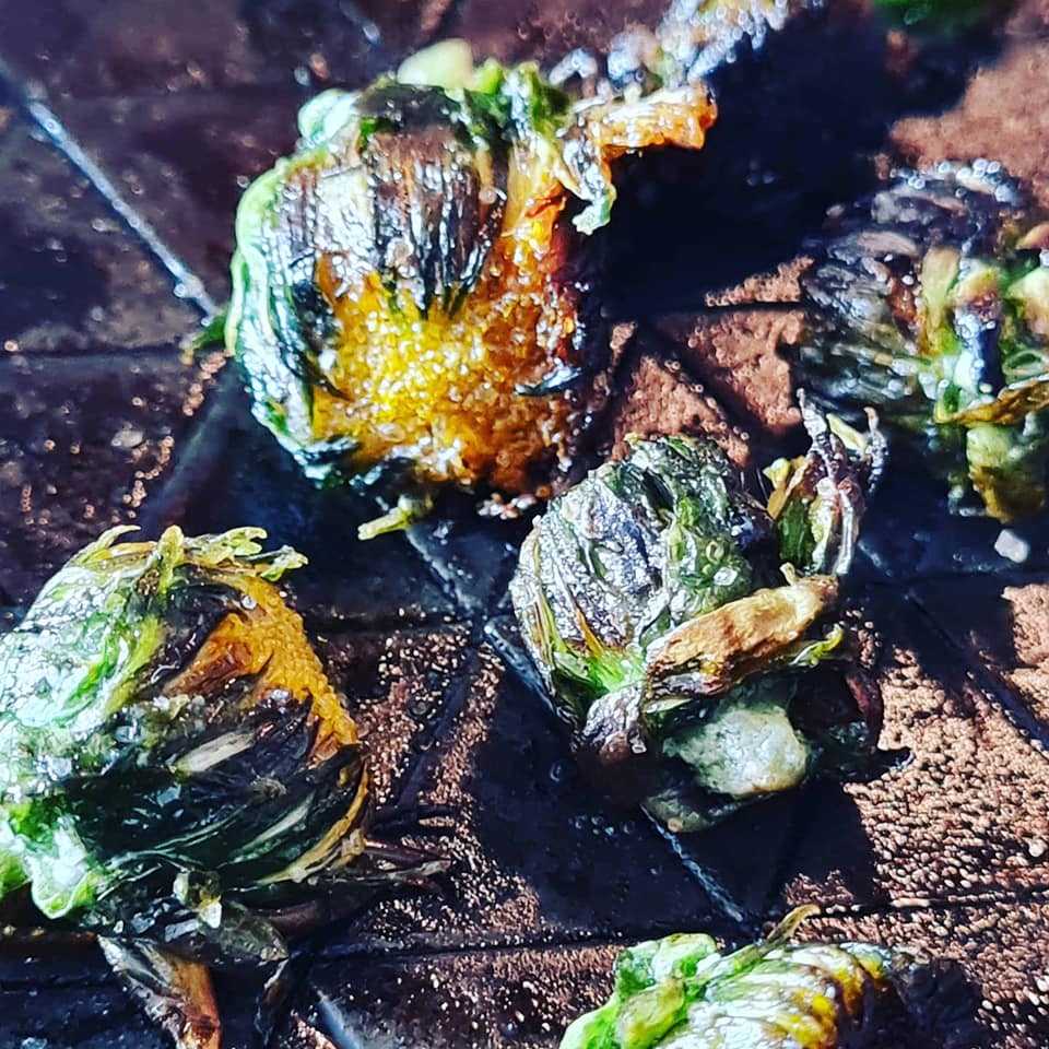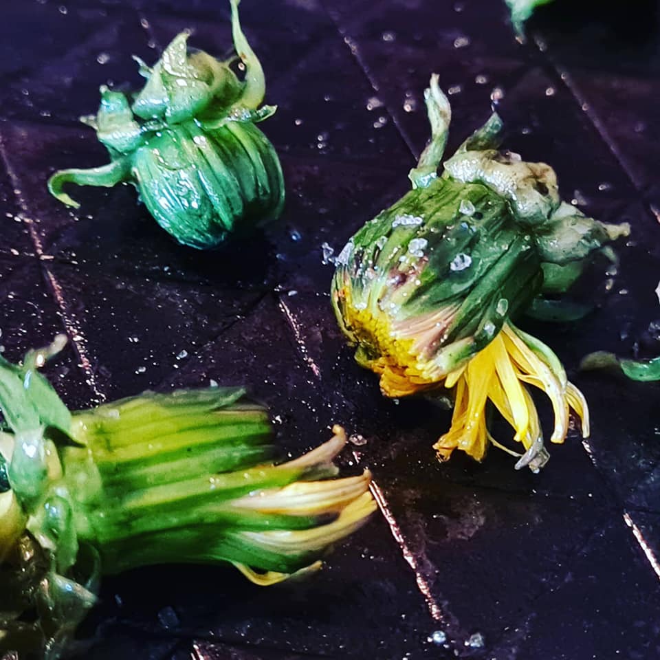 Hier habe ich Löwenzahnknospen in Kokosfett und Salz geröstet. Schmecken frisch geröstet – also rösten und direkt vernaschen.